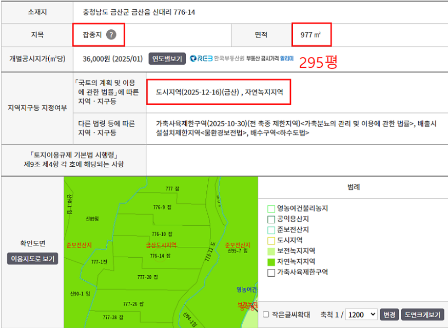 - 토지면적 : 295평(잡종지)