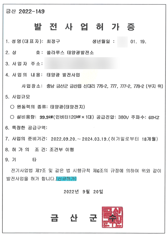 - 발전소명 : 쏠라루스 태양광발전소
