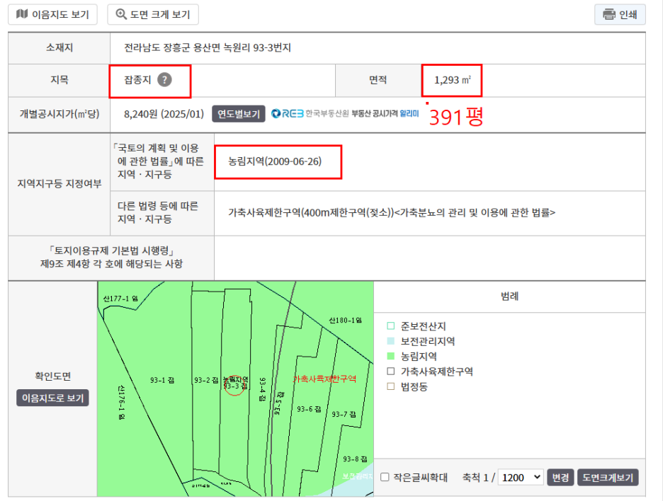 토지면적 : 391평(잡종지)
