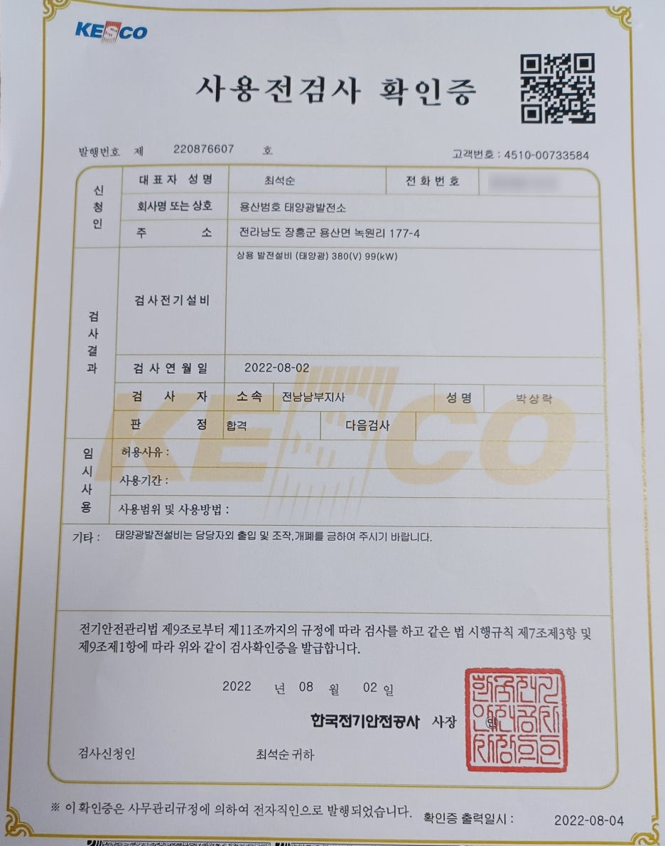 발전사업허가증 / 사용전 검사