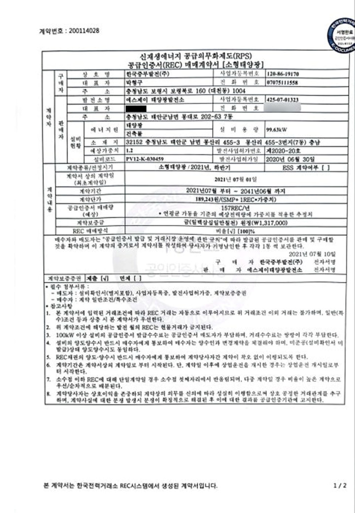 장기계약 여부: 현물 (2024년 FIT 해지)