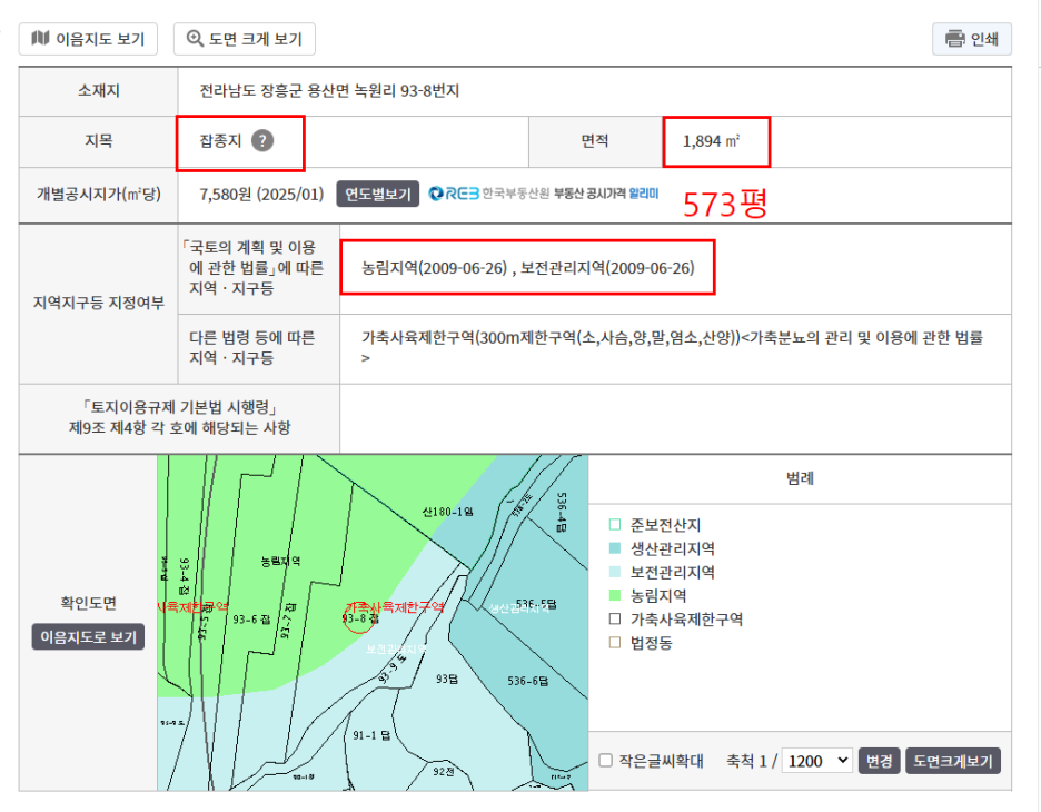 토지면적 : 573평(잡종지)