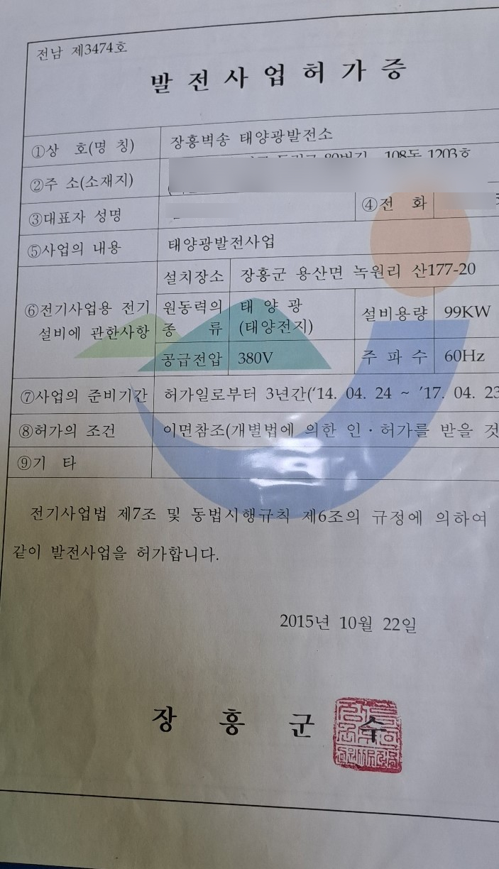 발전소 명 : 장흥 벽송 태양광발전소
