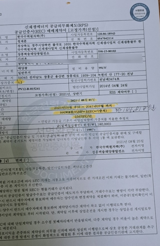 장기계약 : 2021년 08월~2041년 07월까지